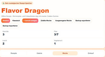 Flavor Dragon is your personal recipe companion. Save your favorite meals, plan your week effortlessly, and generate smart shopping lists — all in one place. Never forget a great dish again. Features: - Save and organize your recipes - Weekly meal planning (Shadow mode & classic mode) - Smart shopping list with automatic ingredient merging - Offline support (perfect for grocery shopping) - Upload your own meal photos - Clean and mobile-friendly design Built for simplicity, speed, and real-life usage.